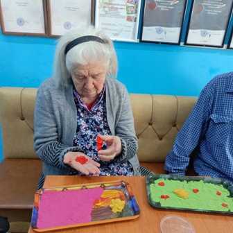 Песочная терапия «Мое настроение» С целью поддержания эмоционального благополучия и предоставления новых возможностей для самовыражения, с проживающими людьми было организовано занятие по песочной терапии на тему «Мое настроение». Эта уникальная методика позволила нашим подопечным погрузиться в мир творчества и рефлексии, используя песок и миниатюрные фигурки для визуализации своих чувств и переживаний. В ходе наблюдения можно было увидеть, как создавалась своя уникальная композиция, отражающая текущее эмоциональное состояние, воспоминания или мечты. Песочная терапия стала не только способом выразить себя, но и возможностью для более глубокого понимания собственных эмоций, а также для установления более тесного контакта с окружающими в атмосфере доверия и поддержки.
