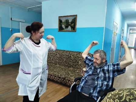 Старшая медсестра кратко рассказала о пользе движения: укрепляет мышцы, улучшает кровообращение, поднимает настроение. Провели Разминку сидя: •повороты и наклоны головы; •круговые движения плечами; •сжимание кистей; •вращения стопами. Провели дыхательные упражнения. Даны советы: гулять 10–15 минут в день, делать мини разминки каждый час.