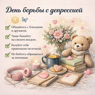 Сегодня, в Международный день борьбы с депрессией, старшая медсестра провела в доме-интернате специальное занятие с проживающими. Была представлена информация о признаках депрессии, методах профилактики и способах поддержки. Участники обсудили важность общения, физической активности и обращения за помощью при возникновении симптомов. Занятие завершилось обменом опытом и рекомендациями по поддержанию эмоционального здоровья.