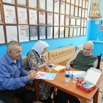 Арт-терапия «Пасха Христова» Арт-терапия- это не только способ самовыражения, но и мощный инструмент для поддержания эмоционального благополучия, развития мелкой моторики и укрепления социальных связей. В преддверии светлого праздника Пасхи в нашем доме-интернате царила особая, творческая атмосфера. Было проведено увлекательное арт-терапевтическое занятие «Пасха Христова». Под руководством психолога, наши подопечные с большим энтузиазмом взялись за кисти и краски. Результатом занятия стало создание рисунков-натюрмортов с пасхальными символами. Это занятие стало не просто возможностью проявить свои творческие способности, но и настоящим праздником души. В процессе творчества участники делились своими мыслями, вспоминая добрые традиции, связанные с Пасхой, что сделало этот день особенно теплым и запоминающимся.